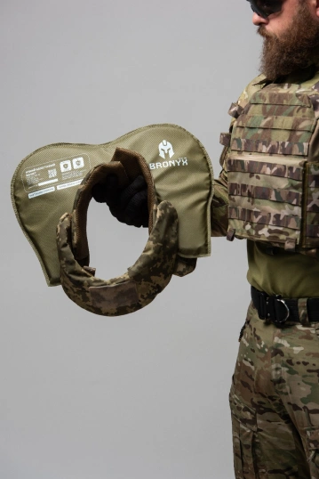 Шия – це одна з найвразливіших ділянок тіла, де проходять важливі судини, нервові канали та дихальні шляхи. Такий захист призначений убезпечити від уламків, шрапнелі, рикошетів та куль, які можуть потрапити в бійця навіть з несподіваних напрямків.